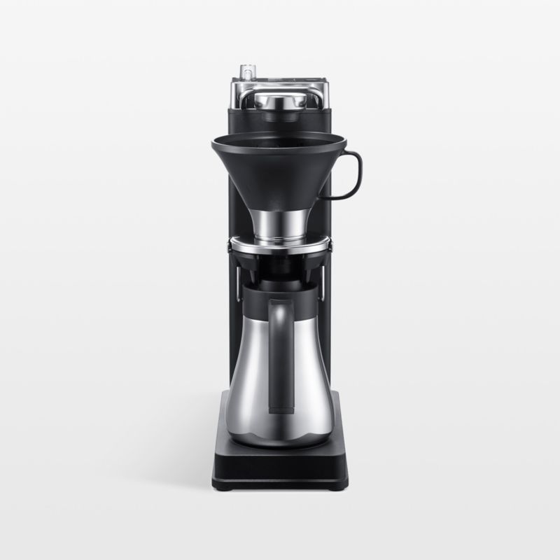 The Brew by BALMUDA automates the pour-over process while maintaining the elegance of the brewing method. After starting up with a gentle light and tone, the coffee maker marks the passage of the brew time with a soft ticking sound inspired by antique clocks. The open design allows you to watch the entire process while enjoying the aroma as the optimal coffee flavors are extracted. A chime signals that the extraction is complete and your coffee—regular, strong or iced—is ready to savor. Sleek in matte black and stainless steel, The Brewer looks sculptural and modern in your kitchen or office.