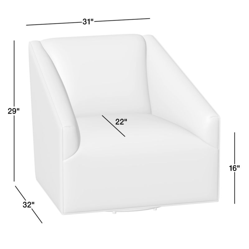 Baron brings maximum lounge to a sleek, modern style. Clean lines and tight tailoring draw the eye to the inviting waterfall seat, cushioned back and tapered arms with soft inside edges. Leather upholstery hugs every curve with a luxe look and buttery soft hand. A relaxing place to unwind, the swivel chair gives you a sweeping view of the room.