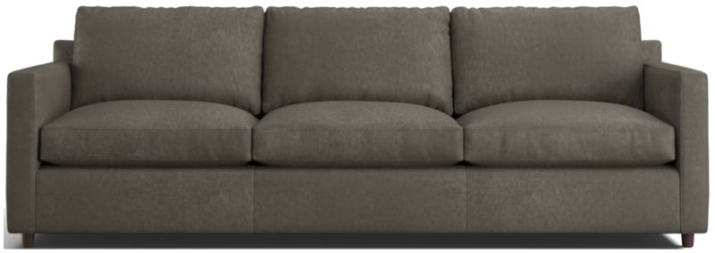 Barrett makes leather seating comfortable, casual and modern. Like fine leather apparel, the full-grain leather feels buttery to the touch and tailors the sofa's clean lines with a graceful drape. The sofa sits upright and comfortable and is styled with track arms, topstitching and recessed legs that float its stylish silhouette. The Barrett leather sofa is a Crate & Barrel exclusive.