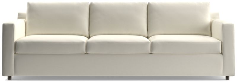 Barrett makes modern affordable and carefree. Upright yet comfortable, this roomy sofa is designed to keep its look casual and clean, even in high-traffic family rooms. The Barrett II 103" 3-Seat Grande Track Arm Sofa is a Crate and Barrel exclusive.