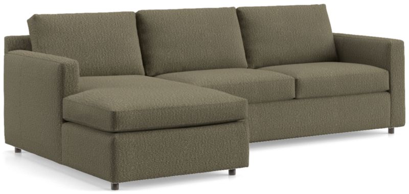 Barrett makes modern sectional seating affordable and carefree. Upright yet comfortable, this versatile sectional looks casual and clean in a contemporary fabric that feels great to the touch and is so durable you don't need to worry about spills or pets. The two-piece sectional is designed to always look its best, even in high-traffic family rooms. The Barrett II 2-Piece Left-Arm Chaise Sectional is a Crate & Barrel exclusive.