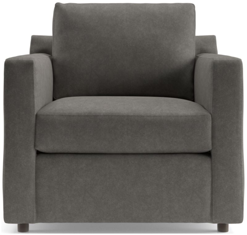Barrett makes modern affordable and carefree. Upright yet comfortable, this versatile collection looks casual and clean in a contemporary fabric that feels great to the touch and is so durable you don't need to worry about spills or pets. Designed to always look its best, even in high-traffic family rooms, the arm chair dresses up or down to suit your space. The Barrett II Track Arm Chair is a Crate & Barrel exclusive.