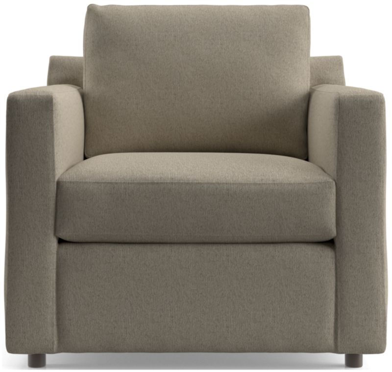 Barrett makes modern affordable and carefree. Upright yet comfortable, this versatile collection looks casual and clean in a contemporary fabric that feels great to the touch and is so durable you don't need to worry about spills or pets. Designed to always look its best, even in high-traffic family rooms, the arm chair dresses up or down to suit your space. The Barrett II Track Arm Chair is a Crate & Barrel exclusive.