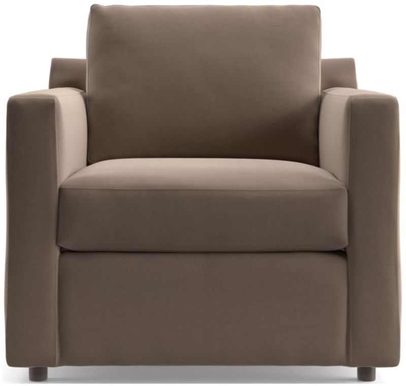 Barrett makes modern affordable and carefree. Upright yet comfortable, this versatile collection looks casual and clean in a contemporary fabric that feels great to the touch and is so durable you don't need to worry about spills or pets. Designed to always look its best, even in high-traffic family rooms, the arm chair dresses up or down to suit your space. The Barrett II Track Arm Chair is a Crate & Barrel exclusive.