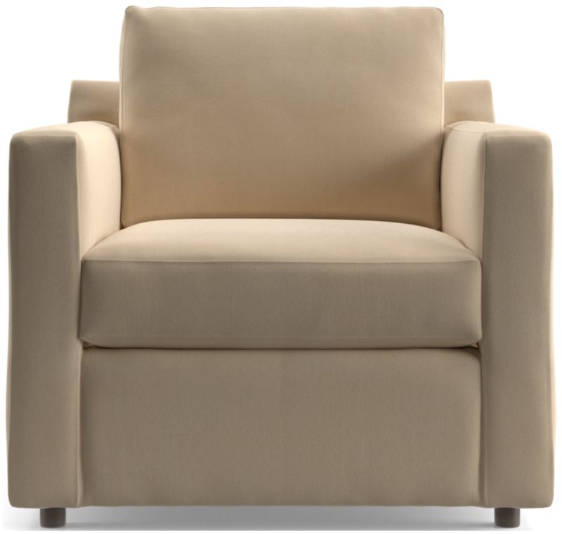 Barrett makes modern affordable and carefree. Upright yet comfortable, this versatile collection looks casual and clean in a contemporary fabric that feels great to the touch and is so durable you don't need to worry about spills or pets. Designed to always look its best, even in high-traffic family rooms, the arm chair dresses up or down to suit your space. The Barrett II Track Arm Chair is a Crate & Barrel exclusive.