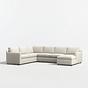 Barrett makes modern sectional seating affordable and carefree. Upright yet comfortable, this versatile sectional looks casual and clean in a contemporary fabric that feels great to the touch and is so durable you don't need to worry about spills or pets. The four-piece sectional is designed to always look its best, even in high-traffic family rooms. The Barrett II 4-Piece Right Arm Chaise Sectional is a Crate & Barrel exclusive.