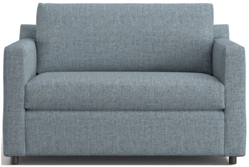 Barrett makes modern affordable and carefree. Upright yet comfortable, this versatile collection looks casual and clean in a contemporary fabric that feels great to the touch and is so durable you don't need to worry about spills or pets. This comfy twin sleeper sofa features a comfortable mattress and a locking tilt-up headrest for reading and media viewing. Designed to always look its best, even in high-traffic family rooms, the twin sleeper sofa dresses up or down to suit your space. The Barrett II Twin Sleeper Sofa is a Crate & Barrel exclusive.