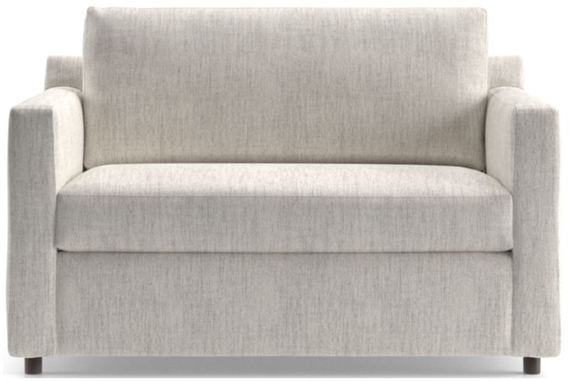 Barrett makes modern affordable and carefree. Upright yet comfortable, this versatile collection looks casual and clean in a contemporary fabric that feels great to the touch and is so durable you don't need to worry about spills or pets. This comfy twin sleeper sofa features a comfortable mattress and a locking tilt-up headrest for reading and media viewing. Designed to always look its best, even in high-traffic family rooms, the twin sleeper sofa dresses up or down to suit your space. The Barrett II Twin Sleeper Sofa is a Crate & Barrel exclusive.
