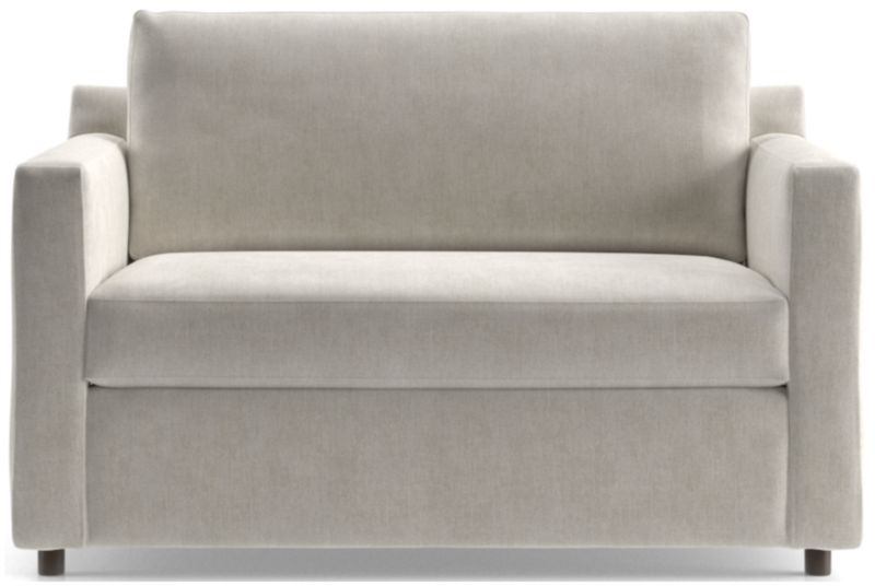 Barrett makes modern affordable and carefree. Upright yet comfortable, this versatile collection looks casual and clean in a contemporary fabric that feels great to the touch and is so durable you don't need to worry about spills or pets. This comfy twin sleeper sofa features a comfortable mattress and a locking tilt-up headrest for reading and media viewing. Designed to always look its best, even in high-traffic family rooms, the twin sleeper sofa dresses up or down to suit your space. The Barrett II Twin Sleeper Sofa is a Crate & Barrel exclusive.