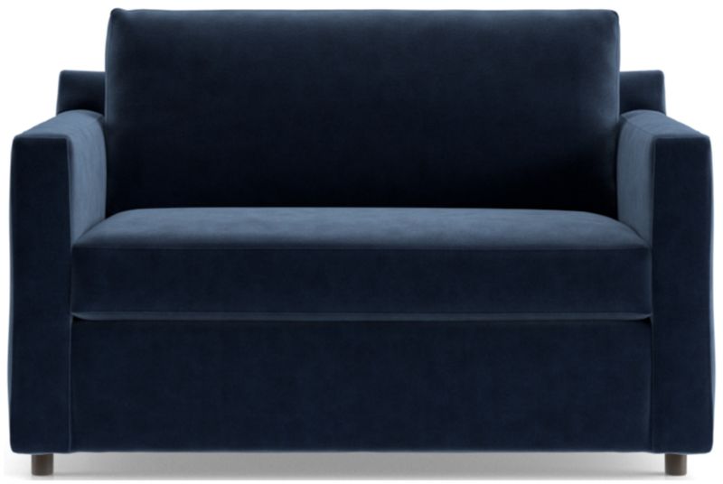Barrett makes modern affordable and carefree. Upright yet comfortable, this versatile collection looks casual and clean in a contemporary fabric that feels great to the touch and is so durable you don't need to worry about spills or pets. This comfy twin sleeper sofa features a comfortable mattress and a locking tilt-up headrest for reading and media viewing. Designed to always look its best, even in high-traffic family rooms, the twin sleeper sofa dresses up or down to suit your space. The Barrett II Twin Sleeper Sofa is a Crate & Barrel exclusive.