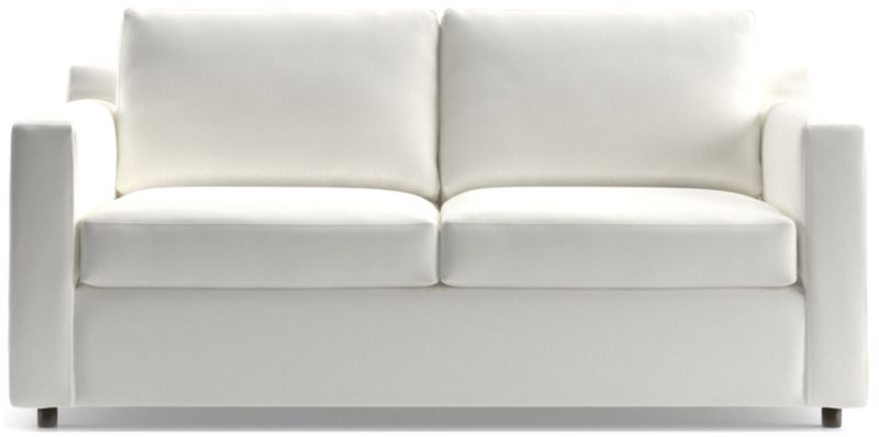 Barrett makes modern affordable and carefree. Upright yet comfortable, this versatile sofa is designed to keep its look casual and clean, even in high-traffic family rooms. The smaller-scaled sofa is perfect for apartments or smaller sized living rooms. The Barrett II Track Arm Apartment Sofa is a Crate & Barrel exclusive.
