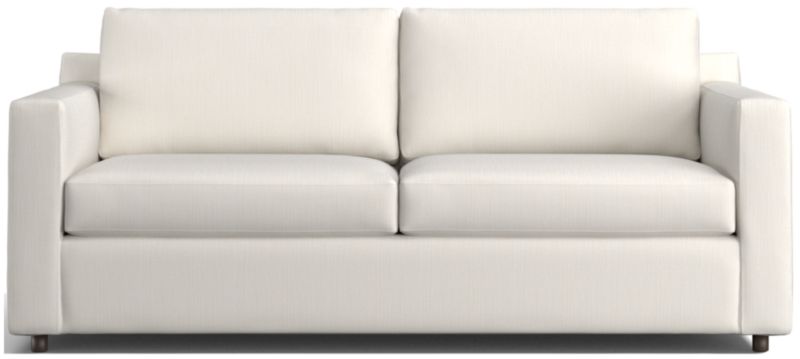 Barrett makes modern affordable and carefree. Upright yet comfortable, this versatile collection looks casual and clean in a contemporary fabric that feels great to the touch and is so durable you don't need to worry about spills or pets. This comfy queen sleeper sofa features a comfortable mattress and a locking tilt-up headrest for reading and media viewing. Designed to always look its best, even in high-traffic family rooms, the queen sleeper sofa dresses up or down to suit your space. The Barrett II Queen Sleeper Sofa is a Crate & Barrel exclusive.