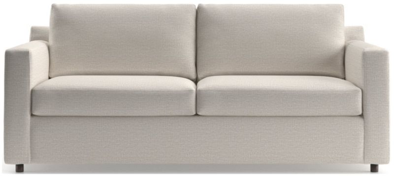 Barrett makes modern affordable and carefree. Upright yet comfortable, this versatile collection looks casual and clean in a contemporary fabric that feels great to the touch and is so durable you don't need to worry about spills or pets. This comfy queen sleeper sofa features a comfortable mattress and a locking tilt-up headrest for reading and media viewing. Designed to always look its best, even in high-traffic family rooms, the queen sleeper sofa dresses up or down to suit your space. The Barrett II Queen Sleeper Sofa is a Crate & Barrel exclusive.