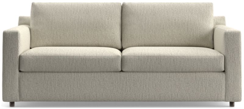 Barrett makes modern affordable and carefree. Upright yet comfortable, this versatile collection looks casual and clean in a contemporary fabric that feels great to the touch and is so durable you don't need to worry about spills or pets. This comfy queen sleeper sofa features a comfortable mattress and a locking tilt-up headrest for reading and media viewing. Designed to always look its best, even in high-traffic family rooms, the queen sleeper sofa dresses up or down to suit your space. The Barrett II Queen Sleeper Sofa is a Crate & Barrel exclusive.