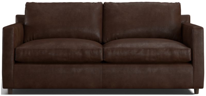 Barrett makes leather seating comfortable, casual and modern. Like fine leather apparel, the full-grain leather feels buttery to the touch and tailors the sofa's clean lines with a graceful drape. The two-seat sofa sits upright and comfortable and is styled with track arms, topstitching and recessed legs that float its stylish silhouette. The Barrett leather track-arm sofa is a Crate & Barrel exclusive.