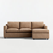 Barrett makes leather seating comfortable, casual and modern. Like fine leather apparel, the full-grain leather feels buttery to the touch and tailors the sofa's clean lines with a graceful drape. Sitting upright yet comfortable, the lounger combines a right-arm sofa with a left-arm storage chaise for a footprint that's ideal for smaller spaces. Simply lift up the chaise cushion to find generous storage space for pillows, blankets and games.