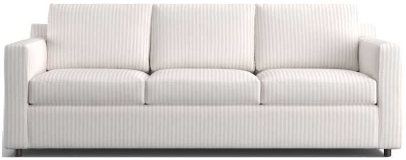 Barrett makes modern affordable and carefree. Upright yet comfortable, this roomy sleeper sofa sectional is designed to keep its look casual and clean, even in high-traffic family rooms. This comfy sleeper features a comfortable mattress and a locking tilt-up headrest for reading and media viewing. The Barrett II 3-Seat Queen Sleeper is a Crate & Barrel exclusive.