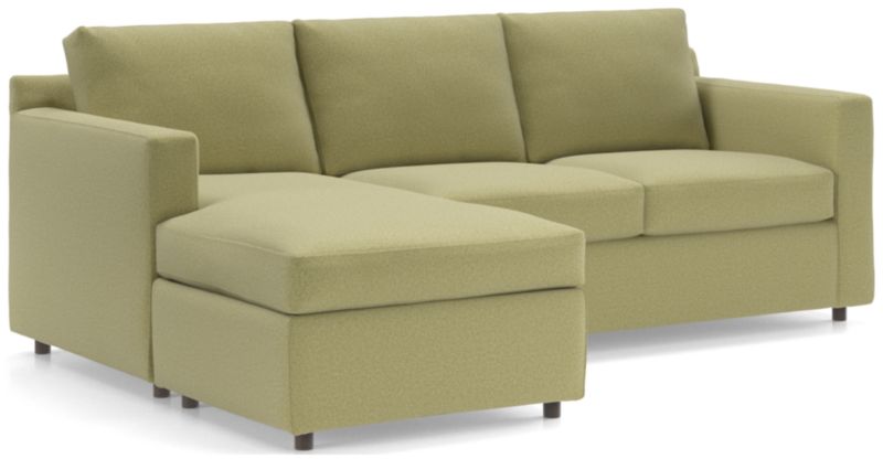 Barrett makes modern affordable and carefree. Upright yet comfortable, this versatile collection looks casual and clean in a contemporary fabric that feels great to the touch and is so durable you don't need to worry about spills or pets. Designed to look like a sectional, the lounger has all the comfort with a smaller footprint that's ideal for smaller spaces, plus the chaise-like cushion and storage ottoman switch from left to right for maximum flexibility. Barrett dresses up or down to suit your space, even in high-traffic family rooms. The Barrett II Reversible Sectional is a Crate & Barrel exclusive.