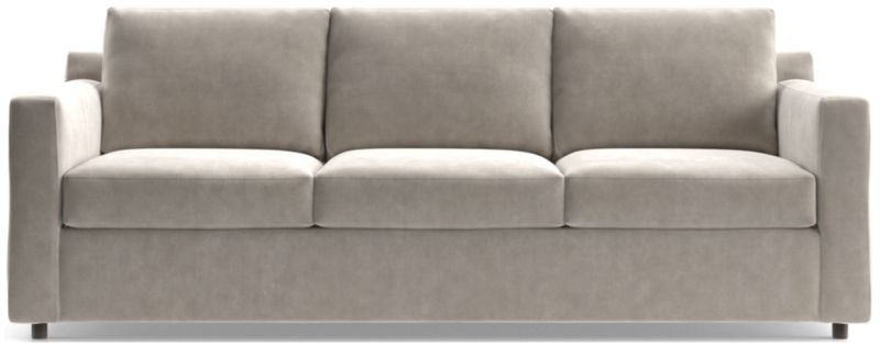 Barrett makes modern affordable and carefree. Upright yet comfortable, this roomy sleeper sofa sectional is designed to keep its look casual and clean, even in high-traffic family rooms. This comfy sleeper features a comfortable mattress and a locking tilt-up headrest for reading and media viewing. The Barrett II 3-Seat Queen Sleeper is a Crate & Barrel exclusive.