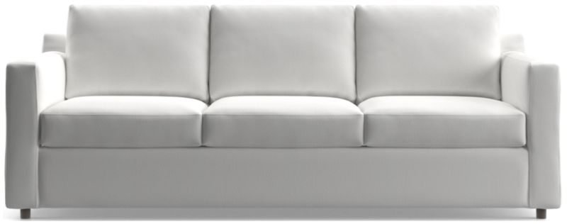 Barrett makes modern affordable and carefree. Upright yet comfortable, this versatile collection looks casual and clean in a contemporary fabric that feels great to the touch and is so durable you don't need to worry about spills or pets. Designed to always look its best, even in high-traffic family rooms, the 3-seat sofa dresses up or down to suit your space. The Barrett II 3-Seat Track Arm Sofa is a Crate & Barrel exclusive.