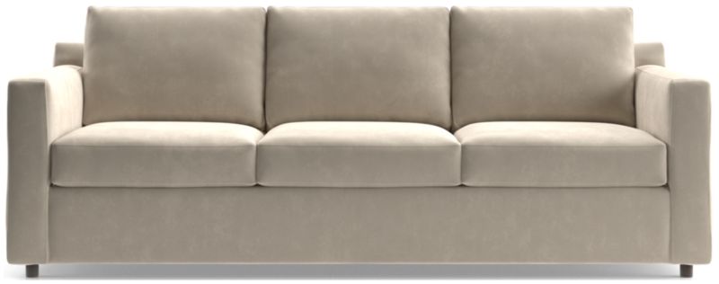 Barrett makes modern affordable and carefree. Upright yet comfortable, this versatile collection looks casual and clean in a contemporary fabric that feels great to the touch and is so durable you don't need to worry about spills or pets. Designed to always look its best, even in high-traffic family rooms, the 3-seat sofa dresses up or down to suit your space. The Barrett II 3-Seat Track Arm Sofa is a Crate & Barrel exclusive.