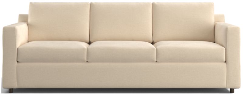 Barrett makes modern affordable and carefree. Upright yet comfortable, this versatile collection looks casual and clean in a contemporary fabric that feels great to the touch and is so durable you don't need to worry about spills or pets. Designed to always look its best, even in high-traffic family rooms, the 3-seat sofa dresses up or down to suit your space. The Barrett II 3-Seat Track Arm Sofa is a Crate & Barrel exclusive.
