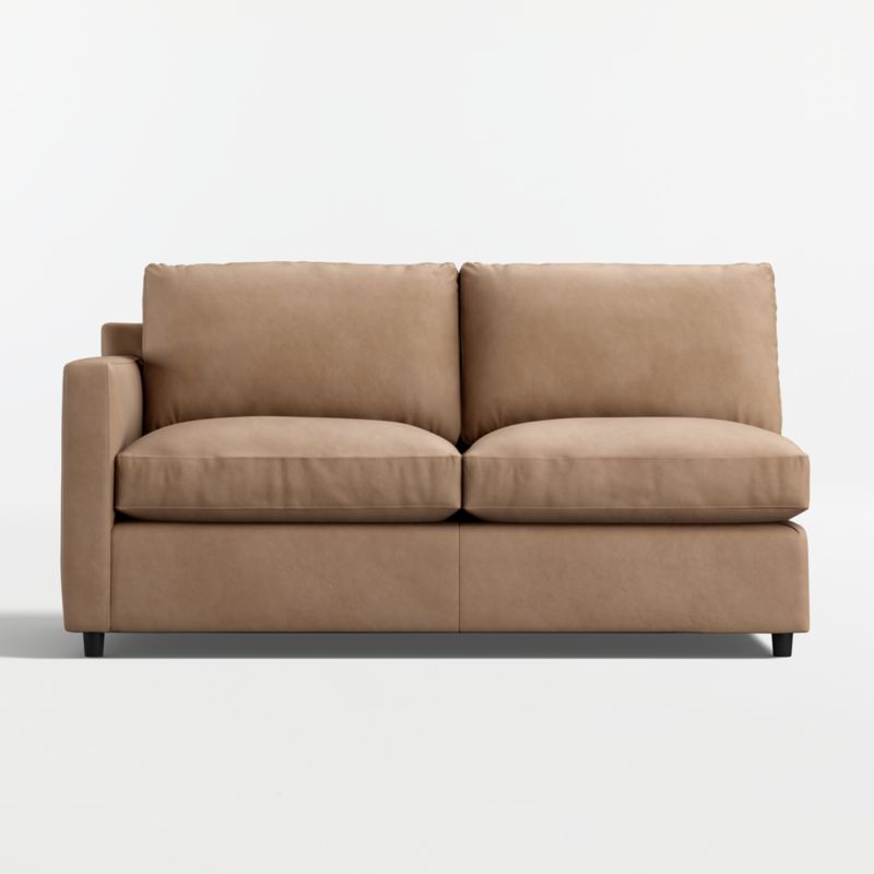Barrett makes leather seating comfortable, casual and modern. Like fine leather apparel, the full-grain leather feels buttery to the touch and tailors the sofa's clean lines with a graceful drape. The left-arm apartment sofa sits upright and comfortable and is styled with track arms, topstitching and recessed legs that float its stylish silhouette. Combine with other Barrett leather components for a custom sectional to suit your space.