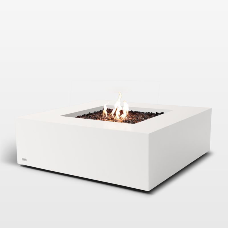 Ideal for entertaining, Base 40 surrounds an inviting smokeless fire with a clean, modern coffee table. Bone-white concrete shapes the table with crisp corners, edges wide enough to host a drink and a low silhouette that encourages lounging and conversation. Fueled by your choice of propane, natural gas or ethanol, the square fire table warms and illuminates your outdoor space any time of year.