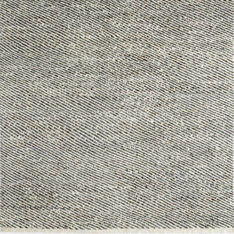 Our Basel rug fascinates, combining an organic wash of hues with the rhythm of subtle, elevated stripes. Alternating ivory and blue/sage green lines pattern the rug on the diagonal, with flecks of cream, tan, brown and tonal greens creating richly mottled depth. Talented artisans create the irresistibly nubby texture by knotting soft wool yarn by hand, and each rug is finished with fringe at both ends for an extra bit of softness. Delightful underfoot, the area rug withstands high traffic in the busiest areas of the home.