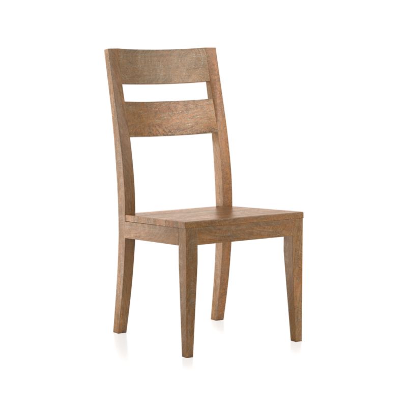 Handcrafted of sustainable solid mango wood stained light brown and washed in grey, Basque recalls the heft and character of a European farmhouse antique. Simple and rustic, this chair features a modified double-slat back handcrafted with authentic peg detailing.