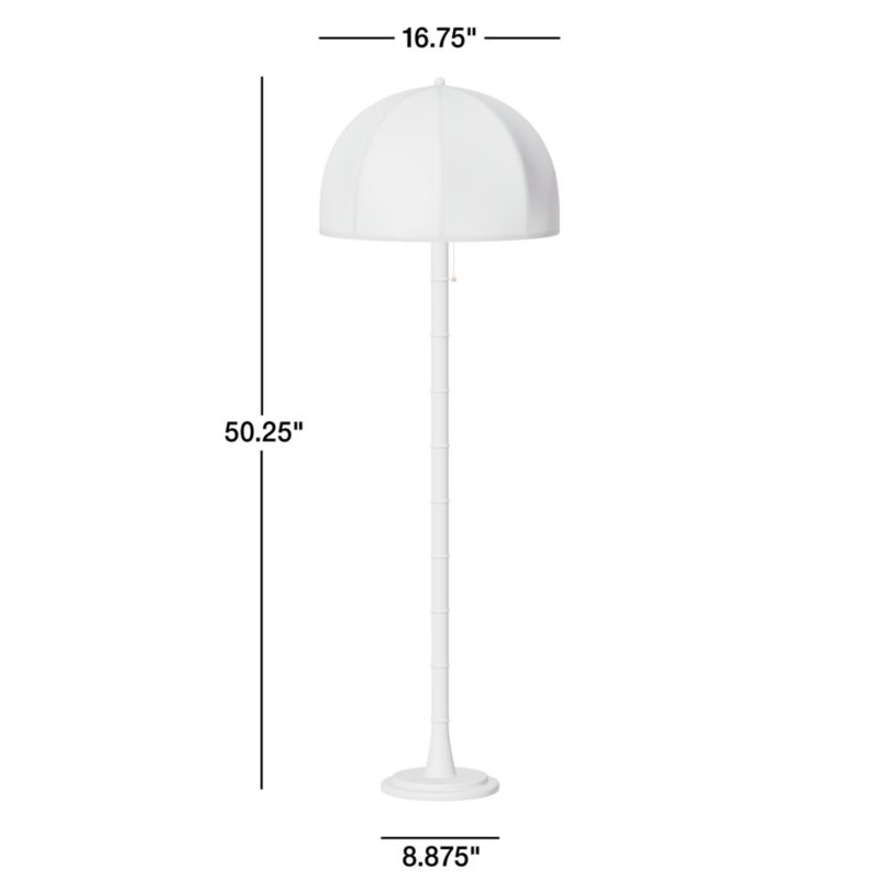 The floor lamp goes from utilitarian to a thing of serious beauty in the hands of designer Jake Arnold. Our Bates Floor Lamp's mix of materials—a faux bamboo base, domed linen shade and sage green piping—give it the look of a custom decorator piece. Its elevated style and subtle pop of color are equally at home in a nursery, a kid's bedroom or a shared family space.