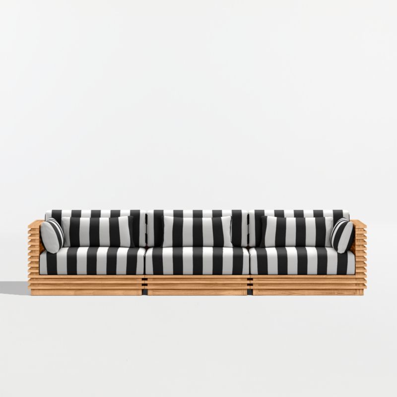 • View Batten 120" Natural Teak Outdoor Sofa with Black and White Cabana Stripe Sunbrella ® Cushions - image 3 of 11