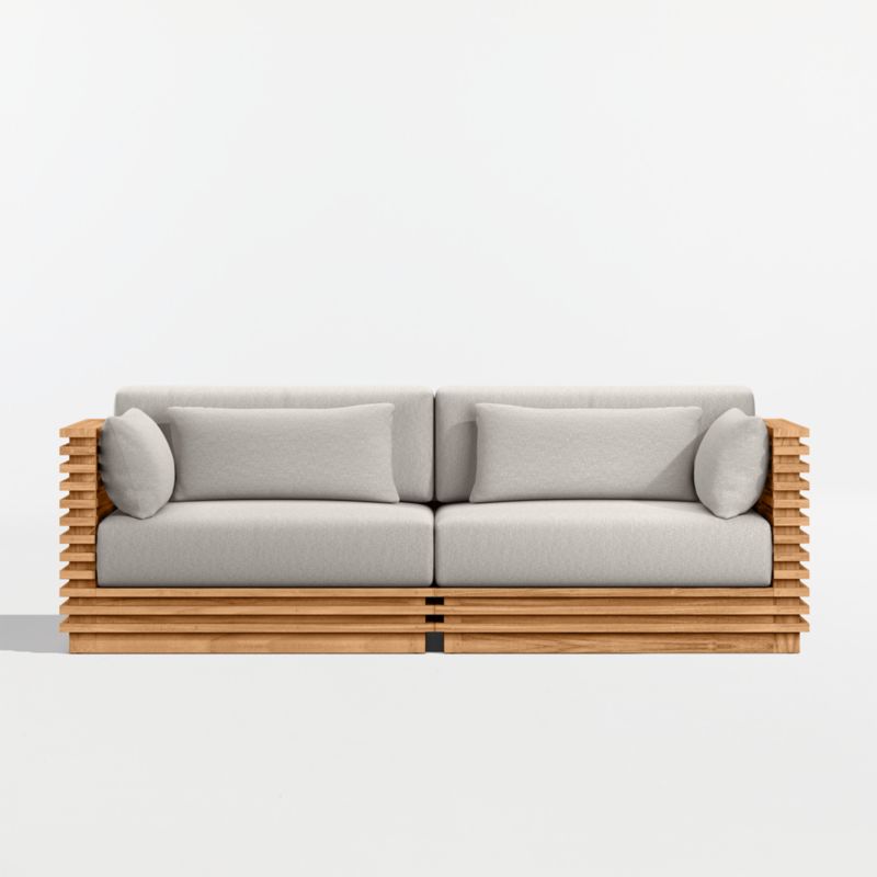 Batten 83" Natural Teak Outdoor Loveseat with Canvas Natural Sunbrella ® CushionsBatten 120" Natural Teak Outdoor Sofa with Canvas Natural Sunbrella ® Cushions