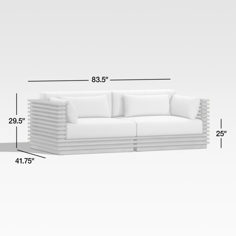 Batten 83" Natural Teak Outdoor Loveseat with Cast Silver Sunbrella ® Cushions29.5"Hheight83.5"Wwidth41.75"DdepthMeasurements are in inches.