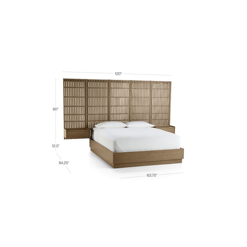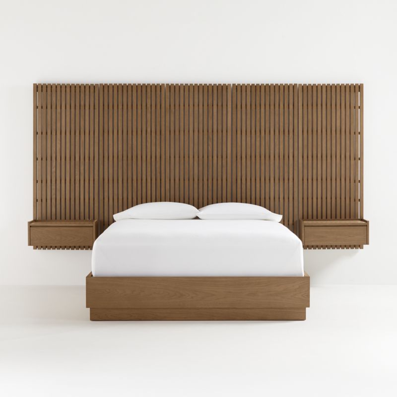 Batten Brown Oak Queen Plinth-Base Bed, Panels and Nightstands