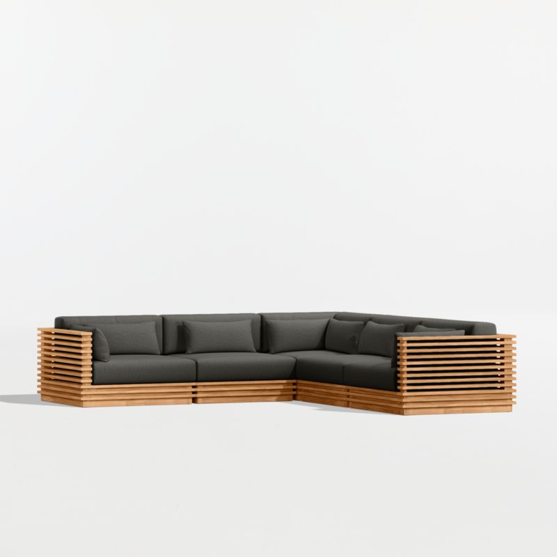 Batten Natural Teak 5-Piece L-Shaped Outdoor Sectional Sofa with Cast Charcoal Sunbrella ® CushionsBatten Natural Teak 5-Piece L-Shaped Outdoor Sectional Sofa with Corner Coffee Table & Cast Charcoal Sunbrella ® CushionsBatten Natural Teak 6-Piece L-Shaped Outdoor Sectional Sofa with Corner Coffee Table & Cast Charcoal Sunbrella ® CushionsBatten Natural Teak 6-Piece L-Shaped Outdoor Sectional Sofa with Side Coffee Table & Cast Charcoal Sunbrella ® CushionsBatten Natural Teak 7-Piece L-Shaped Outdoor Sectional Sofa with Cast Charcoal Sunbrella ® CushionsBatten Natural Teak 7-Piece L-Shaped Outdoor Sectional Sofa with Side Coffee Tables & Cast Charcoal Sunbrella ® CushionsBatten Natural Teak 8-Piece U-Shaped Outdoor Sectional Sofa with Cast Charcoal Sunbrella ® CushionsBatten Natural Teak 8-Piece U-Shaped Outdoor Sectional Sofa with Corner Coffee Tables & Cast Charcoal Sunbrella ® Cushions