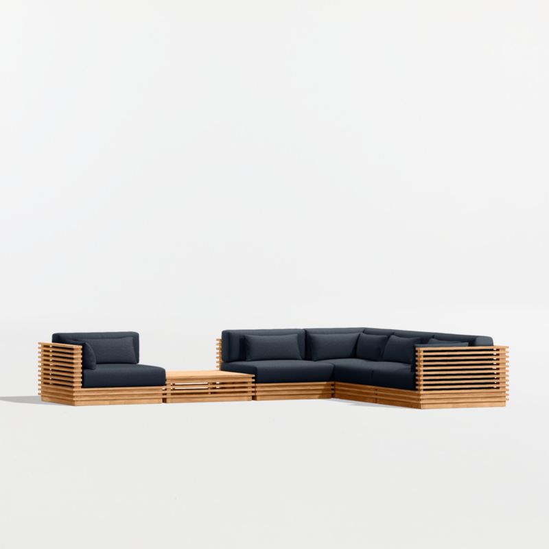• View Batten Natural Teak 6-Piece L-Shaped Outdoor Sectional Sofa with Side Coffee Table & Canvas Navy Sunbrella ® Cushions - image 5 of 12