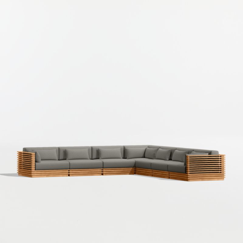 Batten Natural Teak 7-Piece L-Shaped Outdoor Sectional Sofa with Canvas Charcoal Sunbrella ® CushionsBatten Natural Teak 5-Piece L-Shaped Outdoor Sectional Sofa with Canvas Charcoal Sunbrella ® CushionsBatten Natural Teak 5-Piece L-Shaped Outdoor Sectional Sofa with Corner Coffee Table & Canvas Charcoal Sunbrella ® CushionsBatten Natural Teak 6-Piece L-Shaped Outdoor Sectional Sofa with Corner Coffee Table & Canvas Charcoal Sunbrella ® CushionsBatten Natural Teak 6-Piece L-Shaped Outdoor Sectional Sofa with Side Coffee Table & Canvas Charcoal Sunbrella ® CushionsBatten Natural Teak 7-Piece L-Shaped Outdoor Sectional Sofa with Side Coffee Tables & Canvas Charcoal Sunbrella ® CushionsBatten Natural Teak 8-Piece U-Shaped Outdoor Sectional Sofa with Canvas Charcoal Sunbrella ® CushionsBatten Natural Teak 8-Piece U-Shaped Outdoor Sectional Sofa with Corner Coffee Tables & Canvas Charcoal Sunbrella ® Cushions