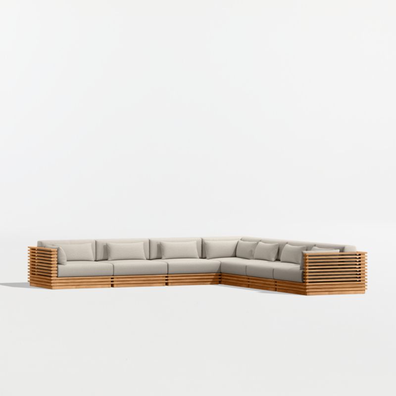 • View Batten Natural Teak 7-Piece L-Shaped Outdoor Sectional Sofa with Canvas Flax Sunbrella ® Cushions - image 2 of 11