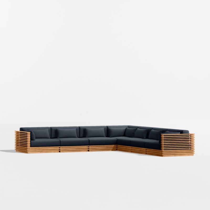 Batten Natural Teak 7-Piece L-Shaped Outdoor Sectional Sofa with Canvas Navy Sunbrella ® Cushions29.5"Hheight157"Wwidth157"DdepthMeasurements are in inches.