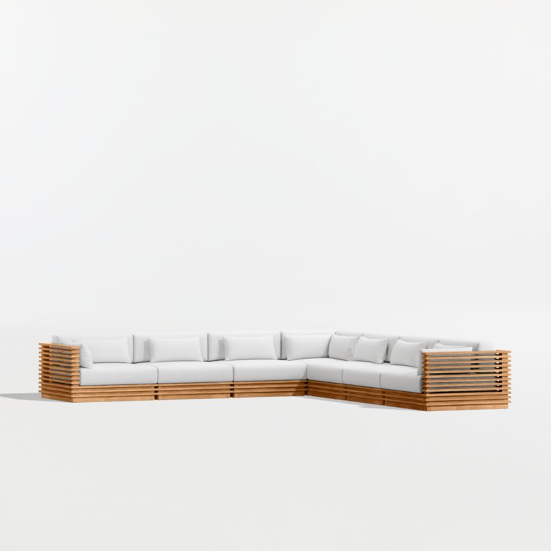 • View Batten Natural Teak 7-Piece L-Shaped Outdoor Sectional Sofa with Canvas White Sunbrella ® Cushions - image 2 of 11