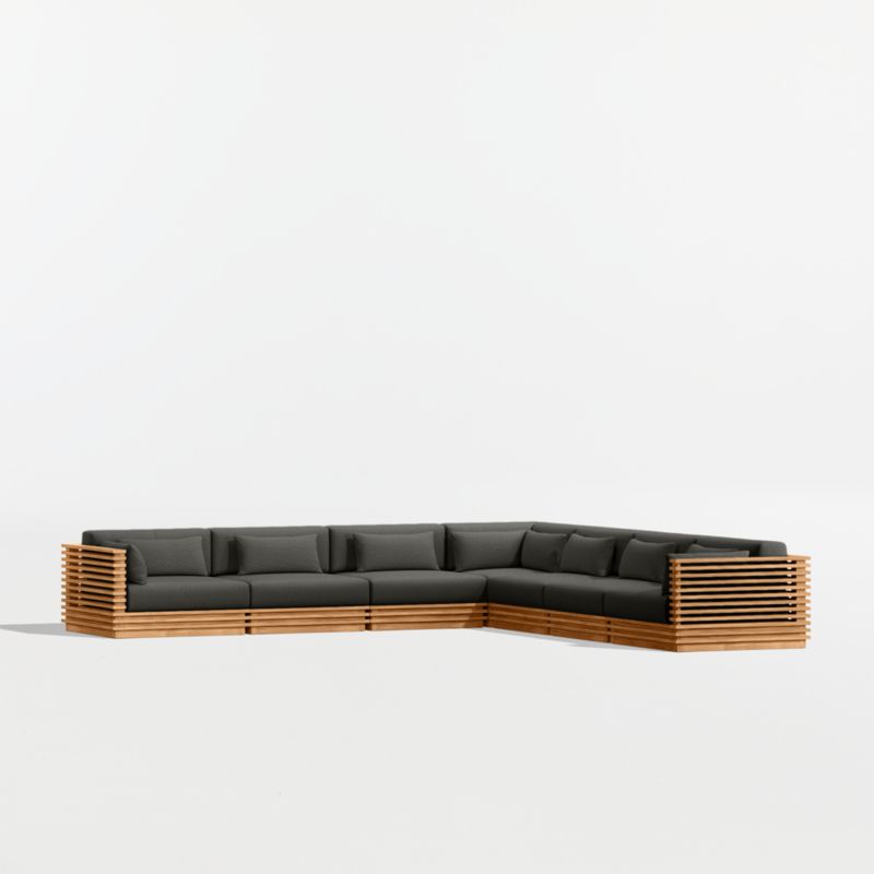• View Batten Natural Teak 7-Piece L-Shaped Outdoor Sectional Sofa with Cast Charcoal Sunbrella ® Cushions - image 9 of 11