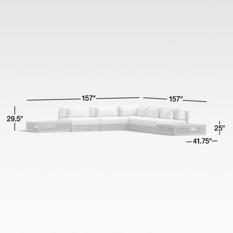 Batten Natural Teak 7-Piece L-Shaped Outdoor Sectional Sofa with Side Coffee Tables & Canvas Sunbrella ® Cushions29.5"Hheight157"Wwidth157"DdepthMeasurements are in inches.