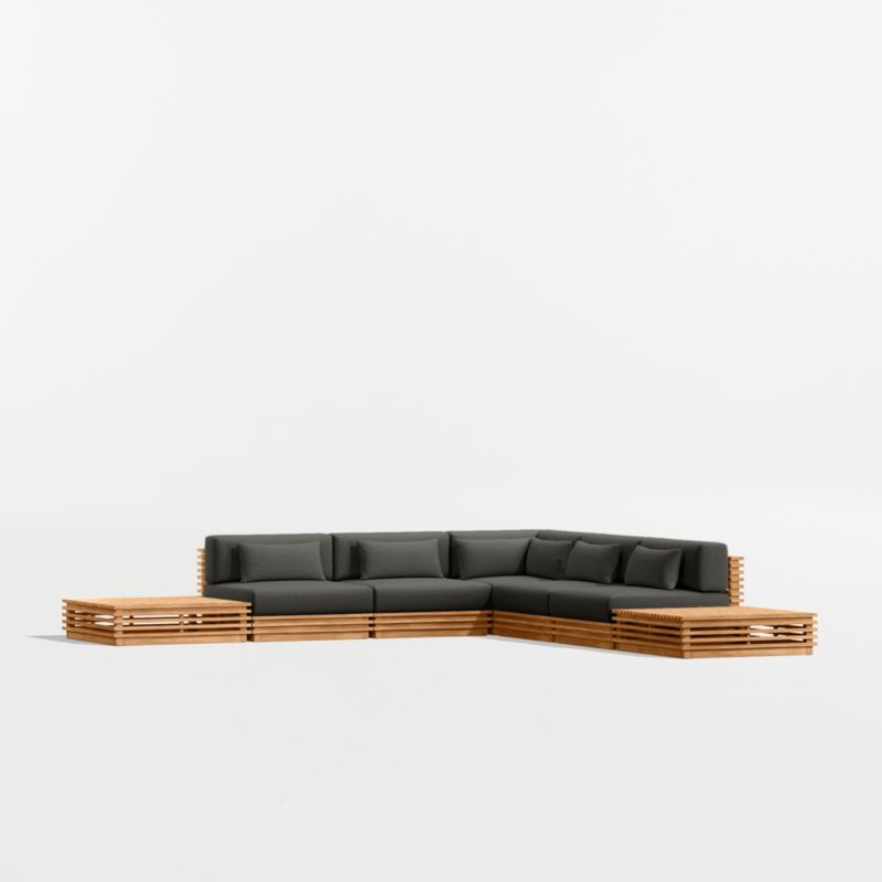 Batten Natural Teak 7-Piece L-Shaped Outdoor Sectional Sofa with Side Coffee Tables & Cast Charcoal Sunbrella ® Cushions