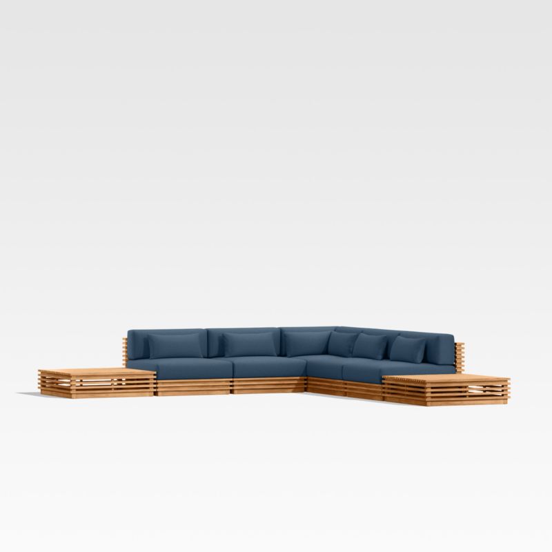 • View Batten Natural Teak 7-Piece L-Shaped Outdoor Sectional Sofa with Side Coffee Tables & Cast Harbor Navy Blue Sunbrella ® Cushions - image 6 of 14