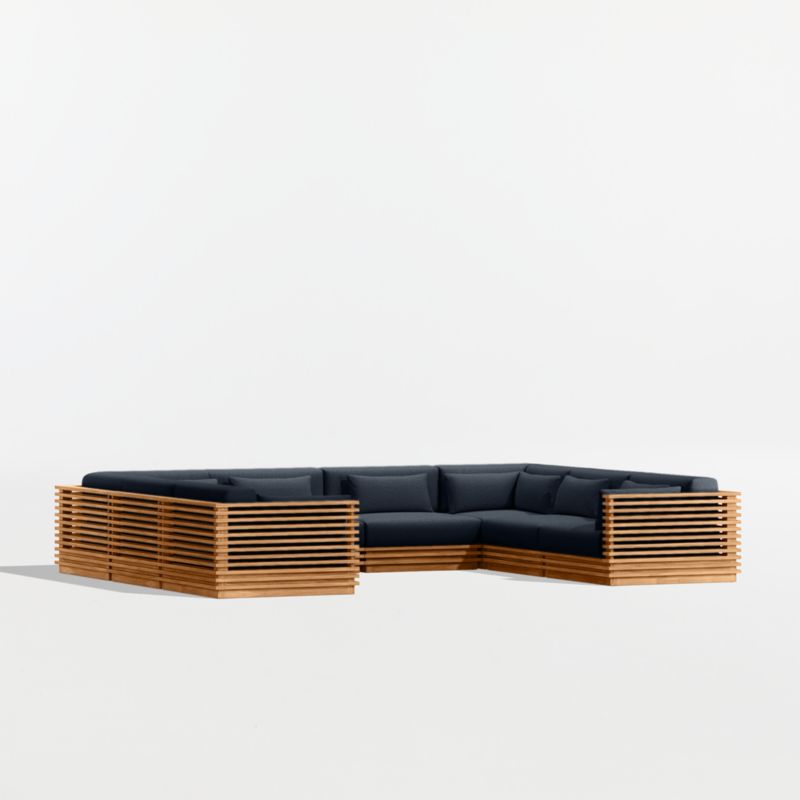 • View Batten Natural Teak 8-Piece U-Shaped Outdoor Sectional Sofa with Canvas Navy Sunbrella ® Cushions - image 6 of 11