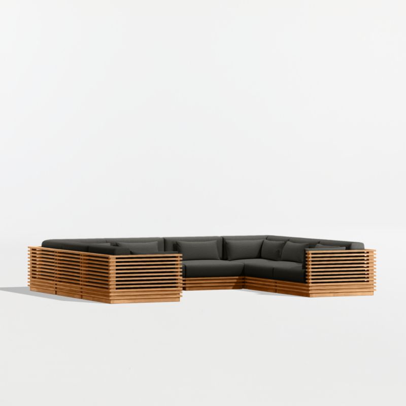 • View Batten Natural Teak 8-Piece U-Shaped Outdoor Sectional Sofa with Cast Charcoal Sunbrella ® Cushions - image 7 of 11