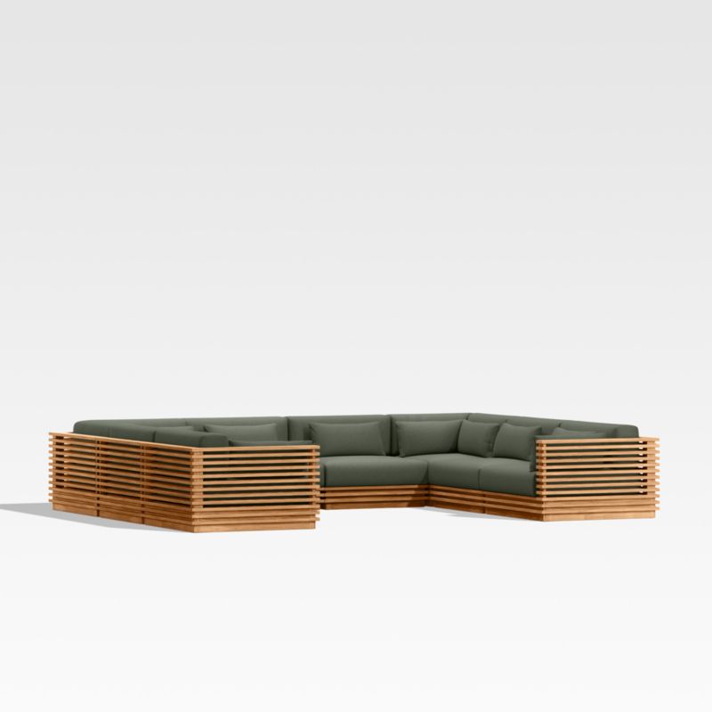 • View Batten Natural Teak 8-Piece U-Shaped Outdoor Sectional Sofa with Cast Sage Green Sunbrella ® Cushions - image 5 of 12