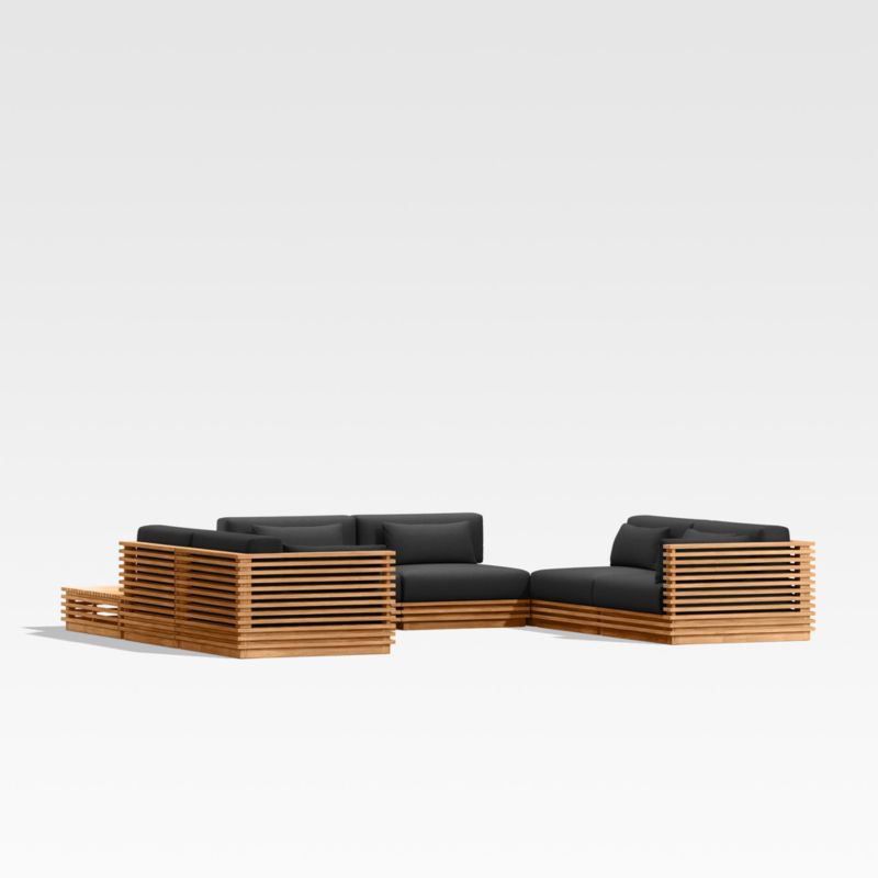• View Batten Natural Teak 8-Piece U-Shaped Outdoor Sectional Sofa with Corner Coffee Tables & Canvas Black Sunbrella ® Cushions - image 10 of 14