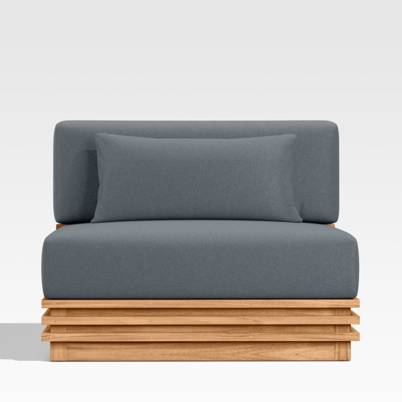 • View Batten Natural Teak Outdoor Armless Chair with Canvas Haze Blue Sunbrella ® Cushions - image 3 of 7